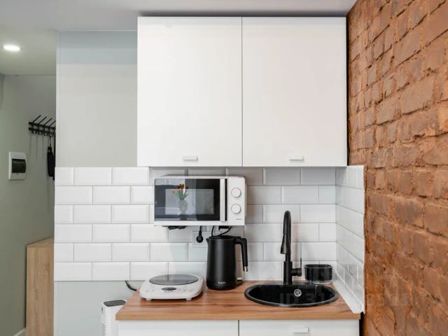 В апартаментах есть аптечка, утюг, гладильная доска, сушилка, стиральная машина, фен, бытовая химия и всё для уборки. На кухне есть всё необходимое: посуда и контейнеры, термос, холодильник, микроволновка, плита, духовка, кофемашина, посудомоечная машина.