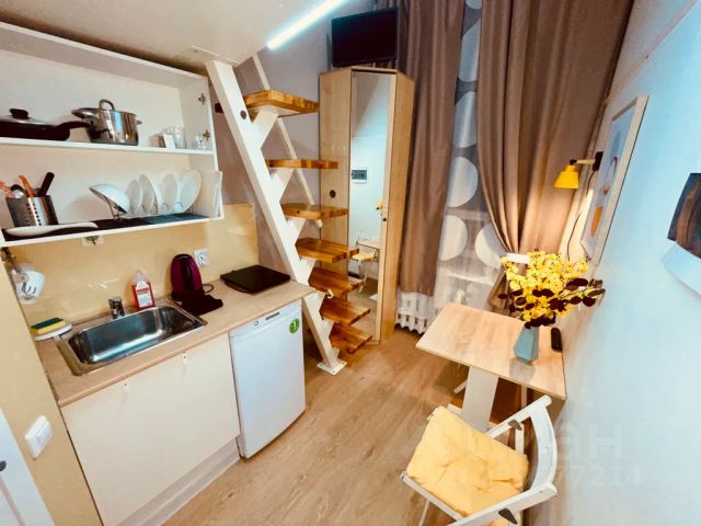 Площадь студии 20м2 + 6м2 второй ярус, который является спальным местом, поэтому возможно размещение как одного человека, так и компании до 4-х человек.