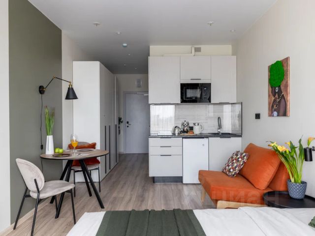 Добро пожаловать в стильный апартамент с дизайнерским ремонтов в апарт-отеле бизнес-класса "ладожский авенир". Апарт-комплекс имеет прекрасное расположение: - В 10-ти минутах ходьбы до ст. Метро ладожская, ладожского вокзала; - В 20-ти минутах на машине/такси до невского проспекта; - В пешей доступности большой торгово-развлекательный комплекс заневский каскад. - В непосредственной близости расположены рестораны. Кофейни, продуктовые магазины. Аптеки и пр. На первом этаже апарт-отеля комфортная зона ресершен, в которой вы можете отдохнуть и поработать. В апартаменте предусмотрено всё для комфортного проживания: -Удобная широкая двухспальная кровать, постельное бельё, полотенца. - Телевизор; - Современная кухонная зона, холодильник, микроволновая печь, электроплита, чайник; -Удобная и стильная рабочая зона; -Wi-fi; - Вся необходимая посуда, столовые приборы, чай, сахар, соль и пр. - Фен, стиральная машина, гладильная доска, утюг, сушилка; - Бытовая химия, жидкое мыло, стиральный порошок и т. д. Правила бронирования: Заезд с 14. 00, выезд до 12. 00 (возможен ранний заезд и поздний выезд по предварительному согласованию) Для обеспечения сохранности имущества берется гарантийный депозит в размере 5000 руб., который возвращается в день уборки. Заселение бесконтактное, возможность заезда 24 часа в сутки! Уборка включена в стоимость проживания! По запросу предоставляются отчетные документы для командировок! Не подходит для вечеринок. Курение запрещено (штраф 3000 руб.). В связи с тем, что апарт-комплекс недавно введен в эксплуатацию, возможно проведение ремонтных работ в близрасположенных апартаментах. Ждём вас в гости и желаем вам отличного отдыха в нашем прекрасном городе санкт-петербург! Квартира-студия посуточно на проспекте Наставников в Санкт-Петербурге.