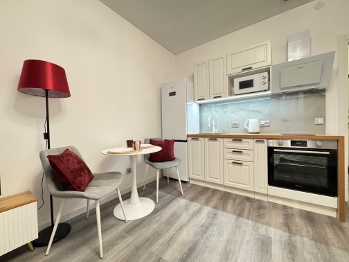 • Холодильник, варочная поверхность, микроволновка и чайник.