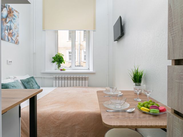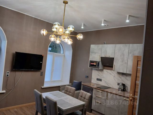Доходный дом купца Е.П. Карелина 1843 года постройки. Архитекторы Реймерс Я.И. и Бек Х.Х. Постройка состоит из основного здания, выходящего на Вознесенский проспект, и ряда дворовых флигелей. В одном из этих флигелей расположена наша Студия. В здании проведена полная реконструкция, заменены все коммуникации, кровля, надстроены два этажа, в порядок приведён двор, вставлены очень красивые окна. В квартире выполнен ремонт, который порадует даже искушенных ценителей красивых интерьеров. В ванной комнате выполнено авторское граффити. В квартире абсолютно все новое, сохранены лишь кирпичные стены и волнистый потолок 1843 года. Чтобы сохранить этот потолок, мы отказались от верхнего освещения и сделали, очень интересный, многоуровневый свет. Всё остальное в интерьере ультрасовременное. Отдельное внимание стоит уделить сантехнике, в душевой кабине в потолок встроен тропический душ. Должны предупредить, что высота душевой кабины составляет 190 см., просим обратить внимание высоких людей, может быть не очень удобно.