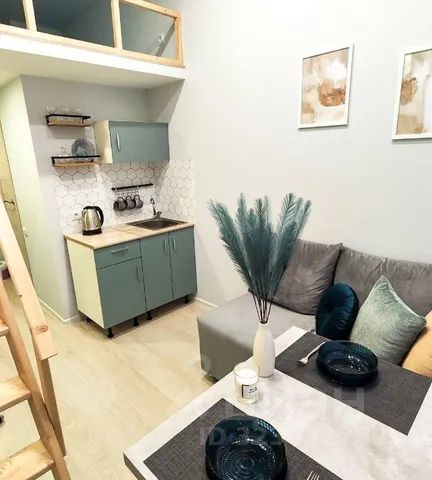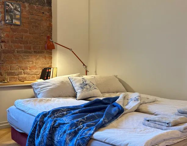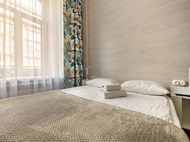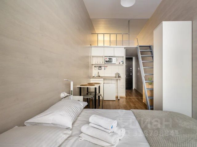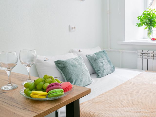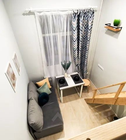 Так как высота потолка 3,7 м., было принято решение, расположить спальное место в мезонине (на втором уровне помещения), вход туда осуществляется по лестнице. Квартира может быть недостаточно безопасна для маленьких детей. Квартира оснащена всем необходимым для комфортного проживания двух взрослых человек: постельное бельё, полотенца, туалетные принадлежности, фен, утюг, гладильная доска, сушилка для белья, зонт, посуда, маленький холодильник, электроплита, чайник, wi-fi.
