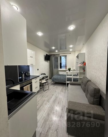 Квартира-студия в ЖК "Краски лета". В квартире есть вся необходимая мебель, кухня со встроенной стиральной машиной, варочной поверхностью, вытяжкой. Еврософа-книжка, шкаф-купе, прихожая, стол, 2 стула. Санузел в кафеле, с ванной 170 см. Застекленный балкон 4 м.кв. Окна во двор,на школу.