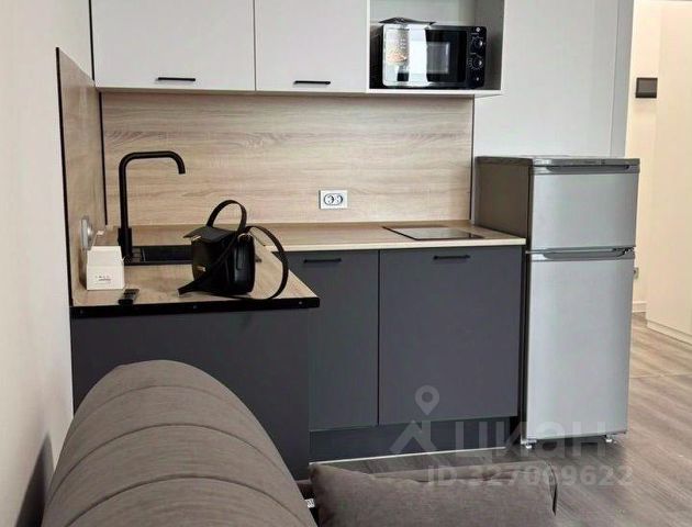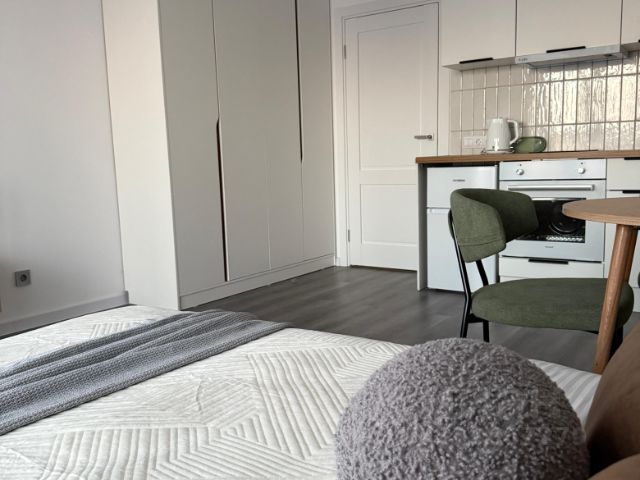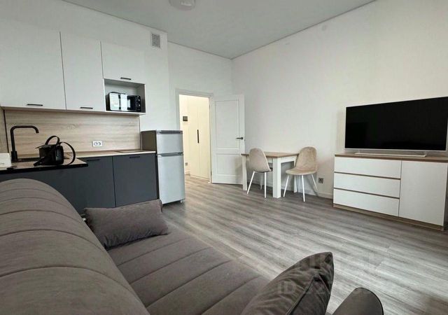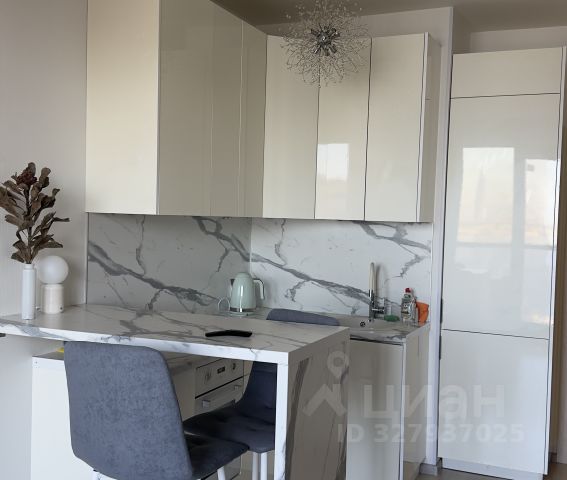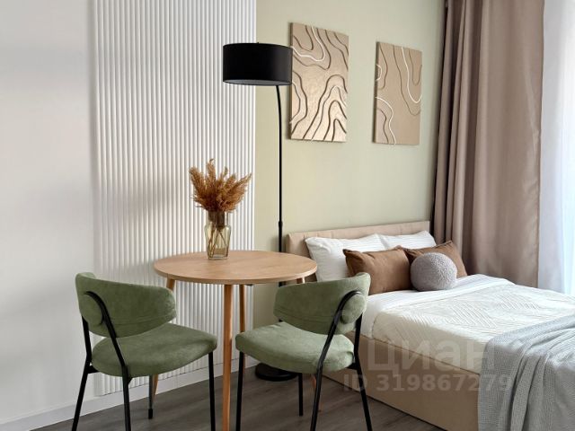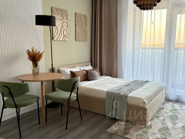 Максимум пользы от каждого метра - при входе зеркальный шкаф во весь рост для потрясающих луков. Кухонная зона отделена от спальной - вы не спите на кухне и не готовите с видом на кровать.