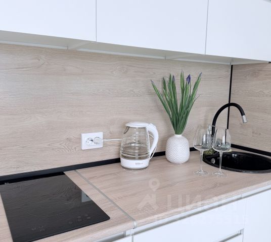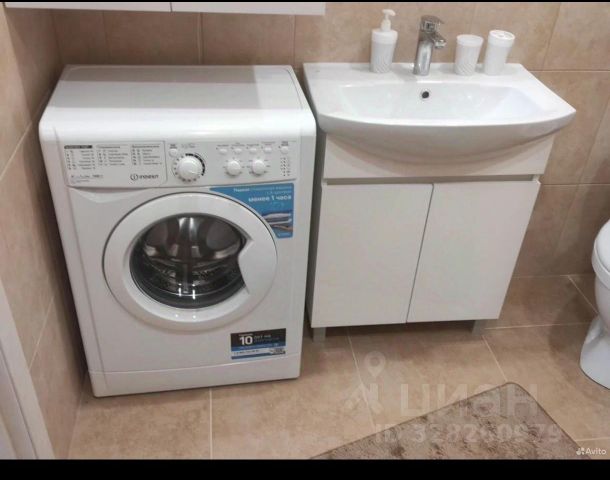 С мебелью и техникой. Есть варочная поверхность, холодильник, стиральная машина.