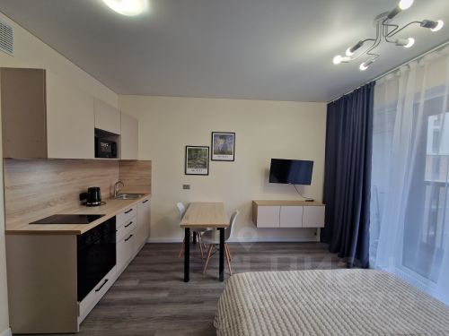 Сдается уютная квартира-студия рядом с метро Московская. *БЕЗ КОМИССИИ* Свежий ремонт,качественные материалы , на полу кварц-винил. Квартира полностью оборудована всем необходимым для комфортного проживания до 2-х человек. Спальное место: большая двухспальная кровать с ортопедическим матрасом(160*200см). Кухня: Оборудована всем необходимым для приготовления пищи и мытья посуды, хранения продуктов и мелкой бытовой техники. В зоне приема пищи раздвижной стол и 2 мягких стула со спинками. Встроенная электрическая поверхность на 2 конфорки, холодильник Indesit общим объемом 300л с функцией nofrost, электрический чайник Xiaomi объемом 1,7 литра, вместительная раковина. Санузел в кафеле, полы с подогревом, душевая кабина, унитаз, раковина, зеркало , стиральная машинка Indesit с загрузкой до 5 кг, большой электрический полотенцесушитель, вместительная многофункциональная корзина для белья из 2х секций , с возможностью размещения вещей на полке. Зона хранения: вместительная прихожая с крючками для верхней одежды ежедневной носки и зоной для хранения обуви, а также отдельный шкаф для хранения верхней одежды и обуви. В комнате расположен большой трехстворчатый шкаф с местами хранения вещей на полках и вешалках. Комод с ящиками и полками, на котором расположен ЖК смарт телевизор Xiaomi диагональю 32 дюйма. Большая лоджия 5,2 м2, с двумя раскладными стульями для релаксации) За данную квартиру низкие коммунальные платежи. Парковка: во дворе , близко к парадной. Рядом расположены в пешей доступности детский сад и школа, а также магазин магнит буквально 50м от парадной. В доступности метро Московская (+-25 мин), рядом остановка общественного транспорта. Домашние животные не допускаются. Сдается без комиссии, от собственника! Снять квартиру-студию с детьми в районе Московский в Санкт-Петербурге.