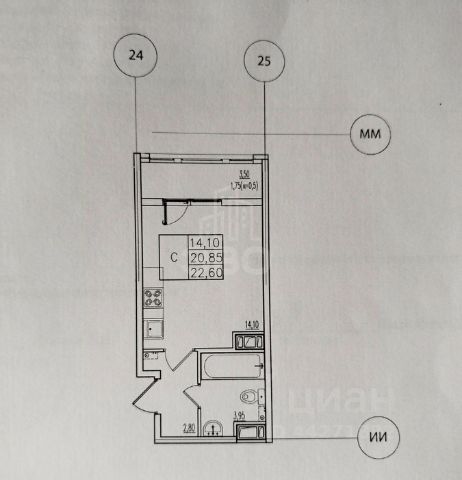 Светлая и уютная квартира общей площадью 22 кв. м. ( +5 кв м лоджия ).