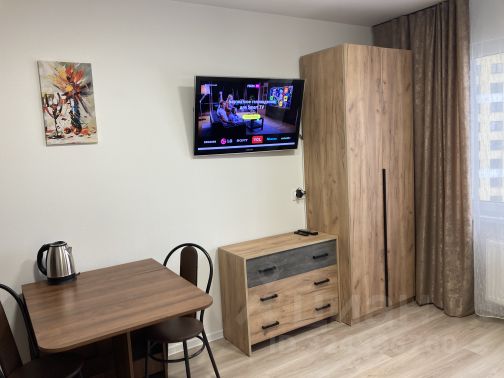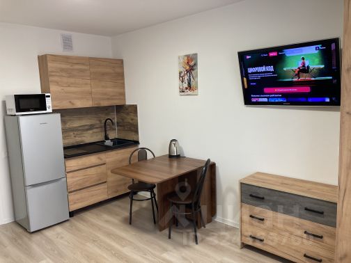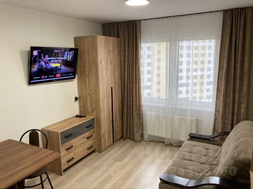 Студия абсолютно новая, с качественным чистовым ремонтом, полностью обустроена мебелью и техникой. В ней еще никто не проживал, вы будете первым жильцом. А все, что необходимо для жизни уже есть: мебель на кухне, шкаф, двухспальная кровать, встроенная техника (холодильник, варочная панель, микроволновая печь), стиральная машина, чайник, постельное белье, подушки, одеяло. Планировка студии позволила организовать даже рабочее место. Телевизор, при необходимости, готовы приобрести.