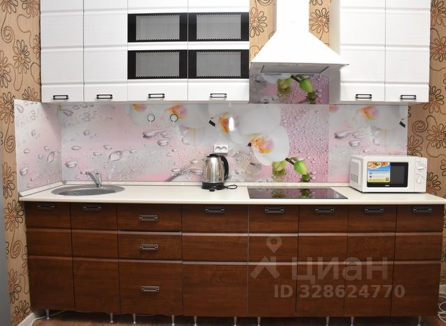— посудомоечная машина, кофеварка, чайник, вытяжка, варочная панель, большой двухкамерный холодильник, СВЧ-печь, 4 комплекта посуды