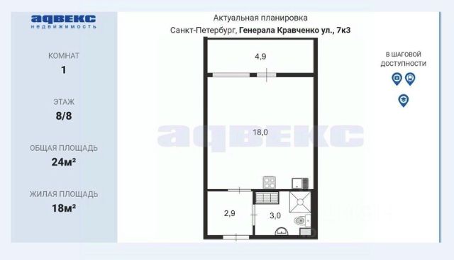 Прекрасная студия 25 кв.м в новом доме, ЖК Солнечный город. Светлая, уютная квартира в окнами на юго-запад. Корпусная компактная мебельная горка, большой телевизор ЖК 32 дюйма, стиральная машина INDESIT на 5 кг. Всё необходимое для комфортной жизни, есть. Закрытый двор, круглосуточная охрана, магазин Дикси, Пятерочка, продукты 24 часа. Под окнами - красивый парк. Застекленная лоджия. Окна во двор. Монолитно-панельный дом. Этаж 8/12. Без детей, животных. Цена аренды + ку. Комиссия агента 50% Номер объекта: #1/539457/18051 Сдается квартира-студия в районе Красносельский в Санкт-Петербурге.