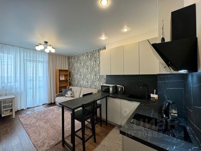 + полностью оборудованная кухня со всей необходимой мебелью и техникой (холодильник, варочная панель, чайник,