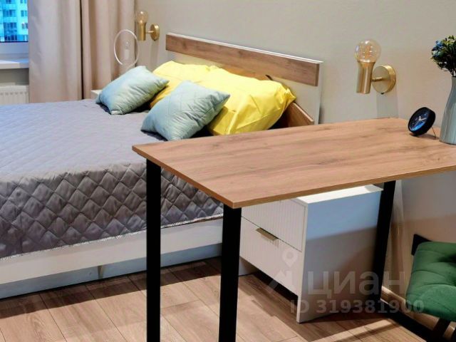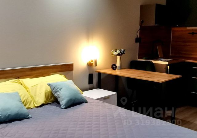 Сдается студия 24 кв. метров в 10 минутах ходьбы от метро Ладожская. Приятный дизайн в золотисто-зеленых тонах, эргономичная мебель, продуманная организация пространства.