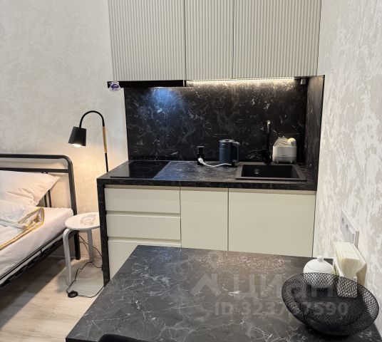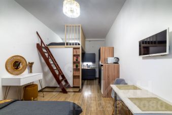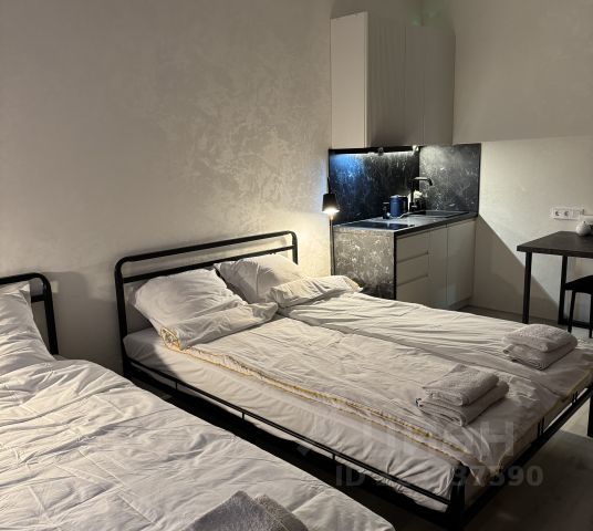 БЕЗ КОМИССИИ, от собственника! На любой удобный для вас срок от 30 дней, до конца апреля Свободна и просмотры с 16 ноября В студии имеется два отдельных спальных места для размещения до 4х человек - диван-книжка с мягким ортопедическим основанием 140*200 и ортопедический матрас на втором ярусе 140*200 Кухонный уголок и вся необходимая посуда для приготовления пищи (холодильник, плита, чайник, микроволновка) Индивидуальный санузел, душевая, шкаф для одежды. Стиральная машина и гладильные принадлежности в общей зоне. Тв, интернет Коммунальные - 6.000 фикс Залог - 15.000р