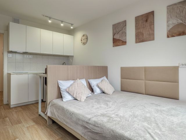С 10 октября сдается студия с дизайнерским ремонтом, кладовой и видом на закат над Финским заливом. ЖК "Морская миля" Уютная и стильная студия площадью 23,6 кв.м. в новом ЖК "Морская миля" на 17 этаже. Изюминка предложения собственная кладовая на этаже 3,6 кв.м. Шикарный вид! Наслаждайтесь потрясающими закатами над Финским заливом прямо из своего окна. В квартире выполнен дизайнерский ремонт с использованием качественных материалов. Квартира полностью оснащена всем необходимым для комфортной жизни: • Вместительный кухонный гарнитур • Бесшумный холодильник • Стиральная машина вынесена в ванную • Кровать с ортопедическим основанием и матрацем! • Просторный шкаф • Уютное кресло Квартира сдается впервые, поэтому все новое и чистое. По согласованию можем доукомплектовать квартиру посудой, мелкой бытовой техникой, постельным бельем. Кладовая ваше дополнительное пространство! • Сухая кладовая 3,6 кв.м. находится прямо напротив квартиры! • Оборудована стеллажами и гардеробной вешалкой. • Идеально подойдет для хранения сезонных вещей, спортивного инвентаря, чемоданов и одежды. Транспортная доступность: • До ближайшей станции метро Автово 20 минут на общественном транспорте. • Остановка автобуса и трамвая прямо рядом с домом. • Перспектива! Все ближе открытие станции метро "Юго-Западная" всего в 500 метрах от дома! Это значительно улучшит транспортную доступность района. • Владельцы авто могут воспользоваться открытой стоянкой или платной охраняемой парковой в 100 метрах от дома. Условия аренды: • Стоимость: 34000р в месяц + коммунальные платежи • Аренда кладовой: 4000р Идеально подходит для: - Молодых специалистов - Студентов - Семейной пары Не упустите возможность жить в красивой квартире с потрясающим видом, удобной кладовой и ортопедической кроватью! Звоните прямо сейчас, чтобы договориться о просмотре! Сдаю квартиру-студию в округе Юго-Запад в Санкт-Петербурге.