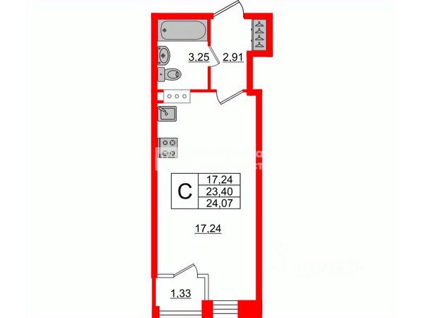 Студия 18,4 м² у м. Чёрная Речка. Аренда от 1 мес., БЕЗ КОМИССИИ.
