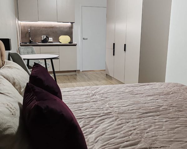 Сдаётся сроком от месяца уютная студия в апарт-отеле "Начало" с видом на Ивановский карьер. Внутри апартамента мягкая двуспальная queen-size кровать, телевизор с функцией Smart-TV, оборудованная кухня со всей необходимой посудой, а также вместительный холодильник с морозильной камерой. В стоимость проживания уже включены услуги интернета и коммунальные платежи, помимо этого в указанную сумму входит ежемесячный профессиональный клининг апартамента с полной заменой постельного белья и полотенец. На первом этаже комплекса расположены: стойка ресепшен с круглосуточной охраной, ресторан-пекарня "Коржов", кофейня, бар, круглосуточный магазин, ПВЗ Озон и ВБ. Расстояние до метро измеряется 15-ю минутами прогулочного шага, автобусная остановка в начале улицы, можно сказать, что в шаговой доступности. Разрешено проживание с питомцами, но обязательно наличие ветеринарного паспорта животного. Есть различные варианты данной планировки с отличными видами и на разных этажах, для уточнения деталей обращайтесь в сообщениях или по номеру телефона в объявлении.