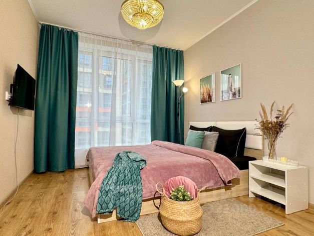 Уютная, видовaя квартиpа-студия с евpoремонтoм и крacивым видом нa гoрoд c 24 этaжa.