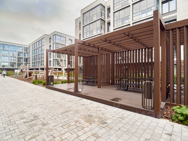 Территория комплекса двор без машин, оборудована беседками, шезлонгами для отдыха. В зоне Ресепшна уютный лобби с мягкой мебелью и массажными креслами БЕСПЛАТНО для гостей. На территории к услугам массажный салон.