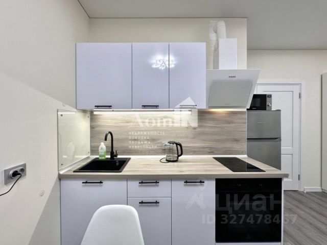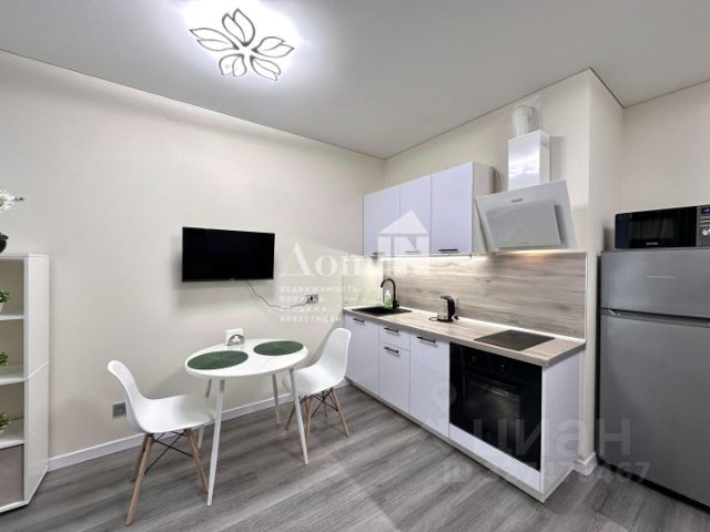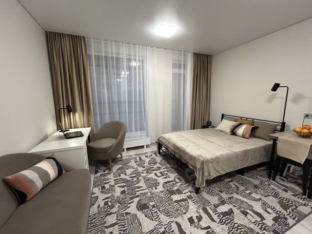 Максимум пользы от каждого метра - при входе зеркальный шкаф во весь рост для потрясающих луков. Кухонная зона отделена от спальной - вы не спите на кухне и не готовите с видом на кровать.