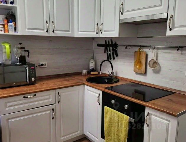 кухня со всей необходимой техникой и домашней утварью ( холодильник, варочная панель, микроволновая печь, чайник, а так же посуда, приборы, сковородки кастюли и т.д.)