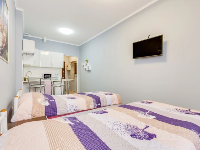 Квартира оборудована всем необходимым для комфортного проживания: в кухне имеется полный набор посуды, плита, холодильник, чайник и микроволновая печь, есть барная стойка, где можно насладиться ужином или завтраком. В ванной комнате - душ, туалет, умывальник, фен и стиральная машина. Полотенца и постельное белье уже входят в стоимость. Квартира идеально подойдет как для краткосрочного, так и длительного проживания
