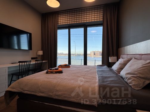Современная студия в стиле лофт с большими окнами в пол и панорамным видом на Неву, Газпром Арену и Лахта башню. Идеально для романтических встреч, деловых поездок и семейного отдыха!