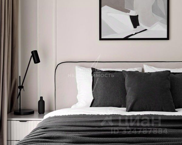 большая спальня (16,8 м2) с рабочим местом, большим гардеробным шкафом, кровать с мягким изголовьем, подъемным механизмом и прикроватными тумбами;