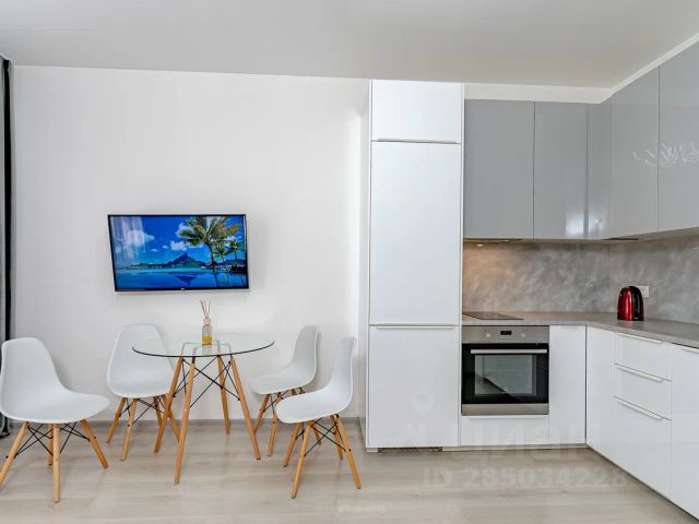 - продуманная стильная кухня с подсветкой, индукционной варочной поверхностью (быстро нагревается и легко моется), микроволновой печью, чайником и холодильником;