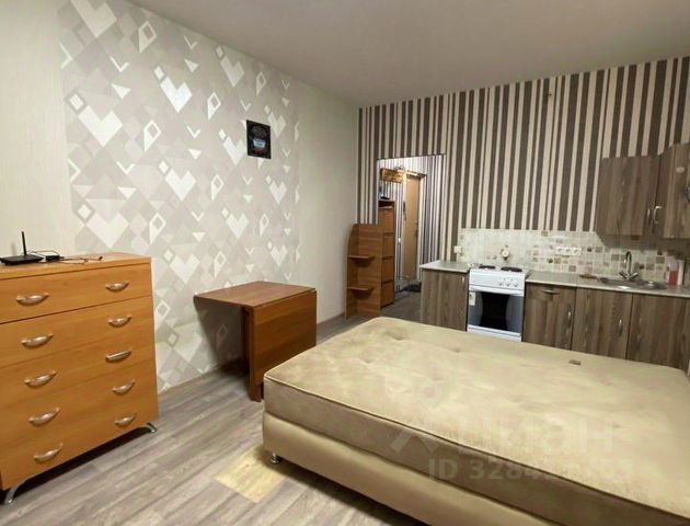 Гостиная/спальня (19 м²): Двуспальная кровать-трансформер, диван, два шкафа, комод, стойка для телевизора, журнальный столик.