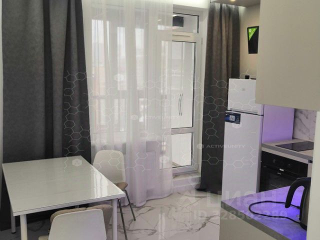 Планировка включает совмещённый санузел с полноценной ванной. В просторной комнате двуспальная кровать, распашные панорамные окна от пола и французскмй балкон придают особый шарм. В прихожей отдельное помещение, в которой организована грамотная система хранения. На кухне выход на просторный балкон, кухонный гарнитур, обеденный стол и стулья. Всё готово для комфортного проживания!