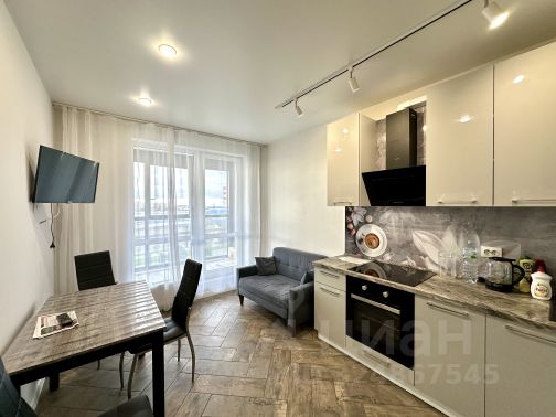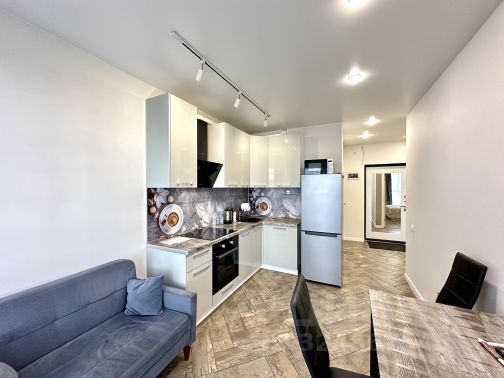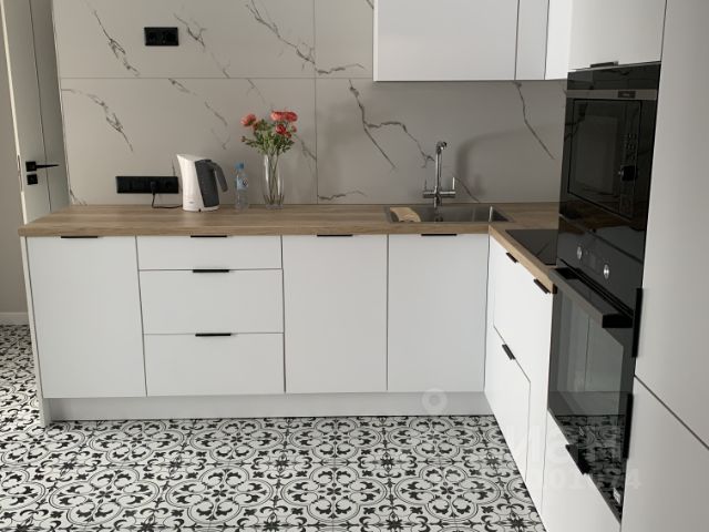 Есть вся необходимая мебель и техника: стильный кухонный гарнитур, посудомоечная машина, духовой шкаф с функцией самоочищения, печь СВЧ, кофемашина, чайник и весь необходимый набор посуды.
