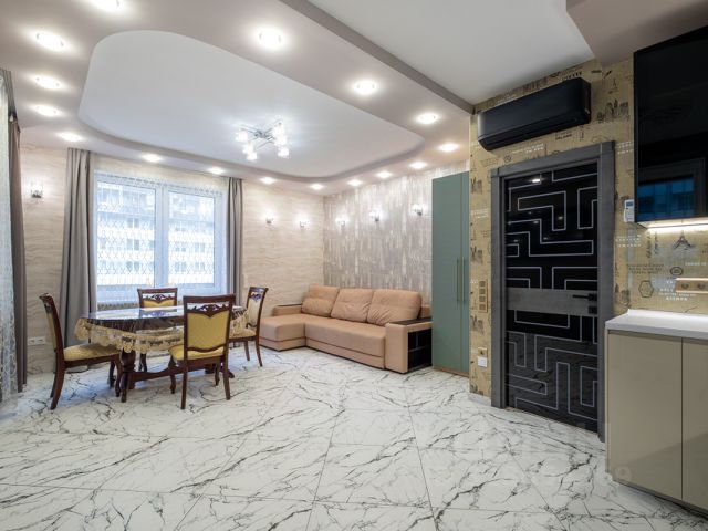О КВАРТИРЕ: Отделка от собственника. Ремонт полностью делался для себя. Квартира оборудована многоуровневым освещением. Потолки 2,75 м. Окна выходят на СВ. Застекленная лоджия, выведены розетки, сделан пол и освещение, наклеена зеркальная пленка на окна (по желанию Наниматель сам может оборудовать зону для отдыха или досуга). Сан. узел оборудован качественной сантехникой, гигиеническим душем, бойлером, системой инсталляции и зоной для хранения. Полы в сан.узле и кухне плитка, оборудованы эл.подогревом. Установлены дизайнерские межкомнатные двери и качественная входная дверь. Много места для хранения вещей. Оборудован вместительный шкаф-гардеробная в коридоре и двухстворчатый шкаф в гостиной. Квартира оборудована мебелью (изготавливалась на заказ) и техникой: кухонный гарнитур с ночной подcветкой и кухонной утварью, электрическая вытяжка, варочная панель (не индукционная), встроенный дух. шкаф, микроволновая печь, эл. чайник, посудомоечная машина, оборудована система фильтрации воды, кофемашина, обеденный стол со стульями, стиральная машина, телевизор в гостиной и в спальне, большой угловой диван (при желании легко превращается в спальное место), Wi-Fi роутер, утюг с гладильной доской, сушилка для белья. Спальня оборудована удобной двух-спальной кроватью с ортопедическим матрасом, комодом и прикроватными тумбочками в едином стиле на заказ. Установлены система кондиционирования и система вентиляции. В квартире проведен домофон с видеонаблюдением. Через личное приложение можно отслеживать видеонаблюдение на лестничной площадке и контролировать пол с подогревом. В спальне оставлено пространство, по желанию Наниматель может оборудовать необходимую зону для работы, досуга или отдыха. Квартира полностью подготовлена для комфортного проживания. В квартире продумана каждая мелочь от системы хранения, техники, различных зон освещения, до разделения на зоны отдыха.