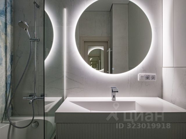 Просторная ванная комната оборудована стиральной машиной, фильтрами холодной и горячей воды, электронагревателем, душевой кабиной, мойкой, полотенцесушителем, зеркалом.