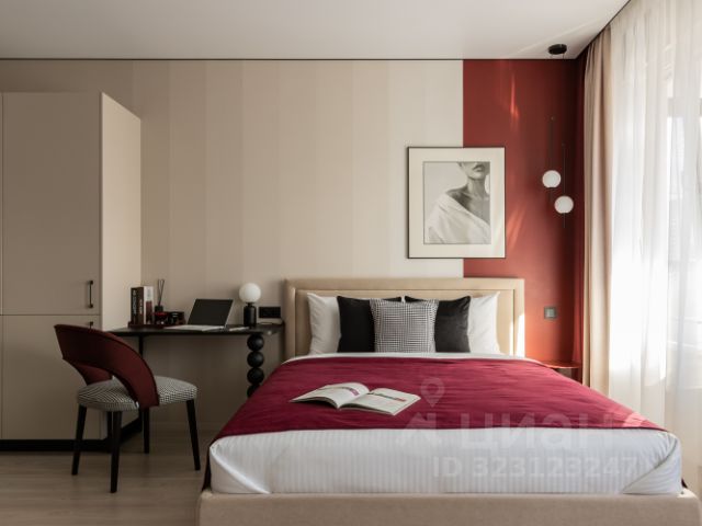 Кровать 160х200 см, ортопедический матрас и абсолютное новое белоснежное постельное бельё из страйп-сатина гарантируют полноценный ночной отдых даже вдвоём (фото 5, 9, 10).