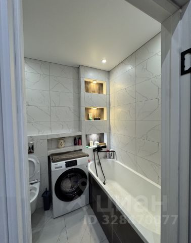 Вход в санузел - из прихожей. И снова комфорт, удобство и стиль в каждом элементе. Огромное зеркало, инсталляция, стиральная машина, шкафчик для хранения, тумба с выдвижными ящиками под раковиной, стильный черный смеситель и под стать ему электрический полотенцесушитель с крючками.