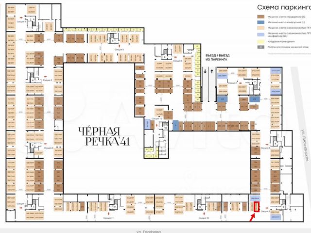 Предлагается в аренду машиноместо в подземном паркинге ЖК Черная Речка 41. Машиноместо 13, общая площадь 13,3 м2. Располагается удобно по отношению к въезду/выезду из паркинга (план прикреплен к объявлению). Рядом колонна, что позволит комфортно открывать двери автомобиля. Находится близко к секциям 6,7 и 12. Стоимость аренды 12.000р, коммунальные платежи оплачиваются отдельно. Просмотры доступны по предварительной договоренности. Если остались вопросы, то позвоните/напишите мне.