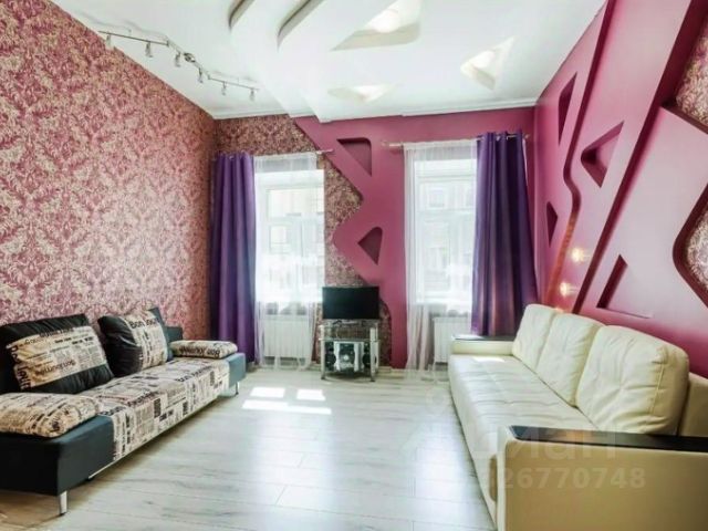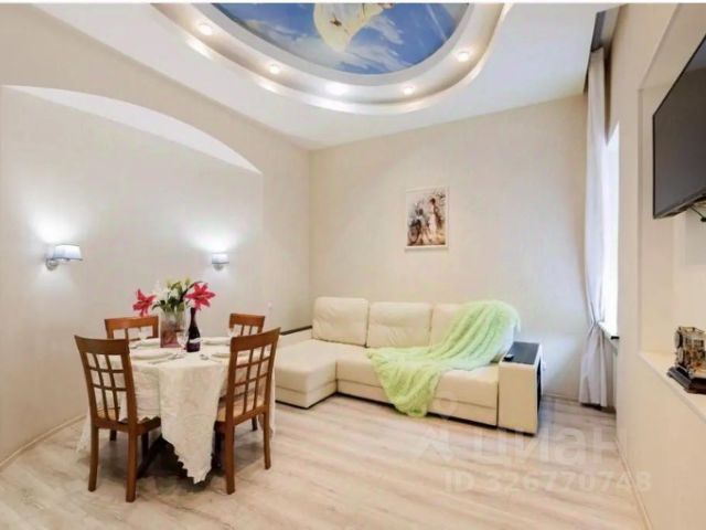 В квартире две просторные спальни, гостиная и кухня. Огромные окна и балкон с видом на канал Грибоедова и переулок Гривцова.