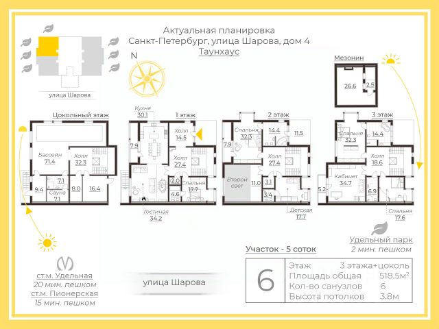 Арт. 106098064 Предлагается в аренду роскошная трехэтажная квартира в парковой зоне. В доме всего 2 квартиры. Закрытая территория с круглосуточной охраной. Два входа: главный с улицы и через подземный паркинг. Общая площадь 520м2. У квартиры свой лифт с цокольного по третий этаж. Первый уровень занимают: гостиная, кухня, спальня со своим с/у, гостевой с/у, холл. Второй уровень: 2 мастер-спальни, балкон. Третий уровень: 2 мастер-спальни, кабинет и терраса. На цокольном этаже: СПА зона с бассейном, хамамом, сауной и душевой, постирочная, большая гардеробная и выход в подземный паркинг. Есть своя придомовая территория (5 соток) с местами для отдыха, грилем и садом. В квартире произведен качественный ремонт по дизайн-проекту, с применением натуральных материалов (дерево ценных пород, мрамор). Интерьер отличается спокойной строгостью, изяществом и утонченностью. Мебель премиальных марок. Бытовая техника Miele. Действующий камин. Установлена система Умный дом. Кондиционирование. В стоимость включены коммунальные платежи и два места в подземном паркинге. Дом находится рядом с Удельным парком, тренировочной базой "Зенит". Сдается на длительный срок. Снять многокомнатную квартиру с детьми рядом с метро Удельная.