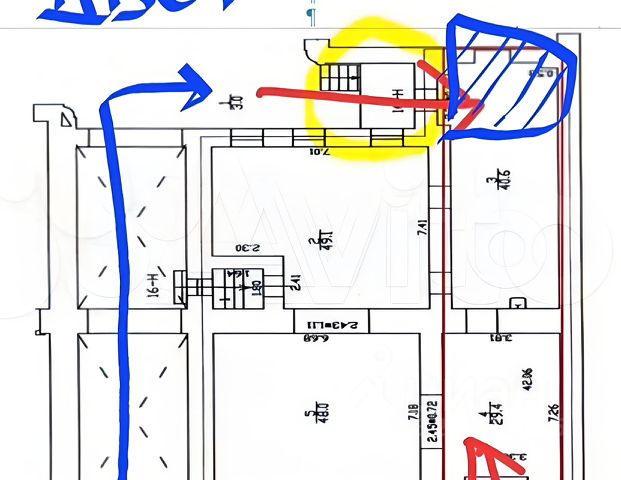 Сервисное помещение в аренду под мастерскую, ателье, парикмахерскую, есть мокрая точка, с отдельным входом со двора. Высокий 1й этаж — бельэтаж, крыльцо.