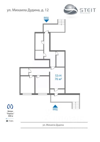 От собственника. Без комиссии. Сдается в аренду помещение 76 кв. м. (53-Н) в ЖК "Паркола" на ул. Михаила Дудина, д. 12. Предоставляются арендные каникулы. Инфраструктура: - Шаговая доступность от ст. м. "Парнас" (800 метров); - Густонаселенный спальный район: вблизи расположены ЖК "Парнас, ЖК "Бумеранг", ЖК "Миллениум", ЖК "Шуваловский дуэт" и др. - Высокая автомобильная и пешеходная проходимость; - Соседние трафикообразующие арендаторы: аптека "Планета здоровья", Суши-бар, Цветочный магазин, пункт выдачи заказов Ozon, Детский центр и др. Преимущества помещения: - 2 отдельных входа; - Возможность разместить заметную вывеску; - Возможность разместить рекламу в окнах; - Электрическая мощность - 20 кВт; - Удобная планировка. Звоните, менеджер объекта расскажет подробнее о помещении и организует просмотр в удобное для Вас время. О компании: STEIT - инвестиционно-управляющая компания, один из крупнейших игроков в области коммерческой недвижимости. Портфель компании представлен торговыми центрами микрорайонного и районного формата, street-retail, загородной недвижимостью и другими проектами.