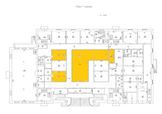Коридорно-кабинетная планировка из 22 комнат (от 9 до 80. кв м). Санузел, душевая.