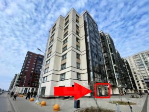 1-й этаж, отдельный вход с улицы. Окружение - жилая застройка, только что сданы и еще будут сдаваться новые корпуса ЖК. Район очень молодой, много семей с детьми