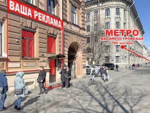 Первая линия, вход со двора, но возможна вывеска на улице над окном