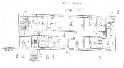 Двухэтажное помещение, первый этаж - 97м и 2,5м потолок, второй этаж - 80м и 1,9м потолок.