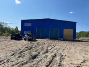под размещение производства, расположенный в д. Большая Рассия в Кингисеппском районе Ленинградской области. Ангар расположен на землях с/х назначения, пол бетонный, высота 8 м., распашные ворота. Внутри построены бытовки....