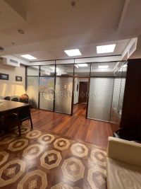 Помещение смешанной планировки. Светлое, с большими окнами, разделено стеклянной перегородкой: кабинет (~ 16 м.кв.) + "Open space".