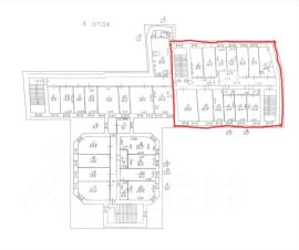 Общая площадь 28 кв.м. Справа вверху на плане, выделено красным.