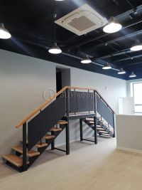 Расположен на пятом этаже. К блоку ведут 2 лестницы - одна с парковки БЦ, вторая из холла.