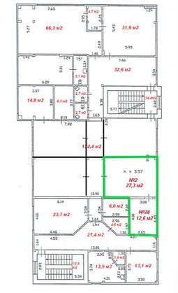Для аренды доступен офис площадью 39,9 м2, состоящий из двух кабинетов: 27,3 м2 и 12,6 м2. Кабинеты оборудованы кондиционерами.