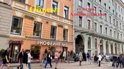 Помещение расположено туристическом центре Санкт-Петербурга, в суперпроходном месте, на входе ст. метро "Адмиралтейская"
